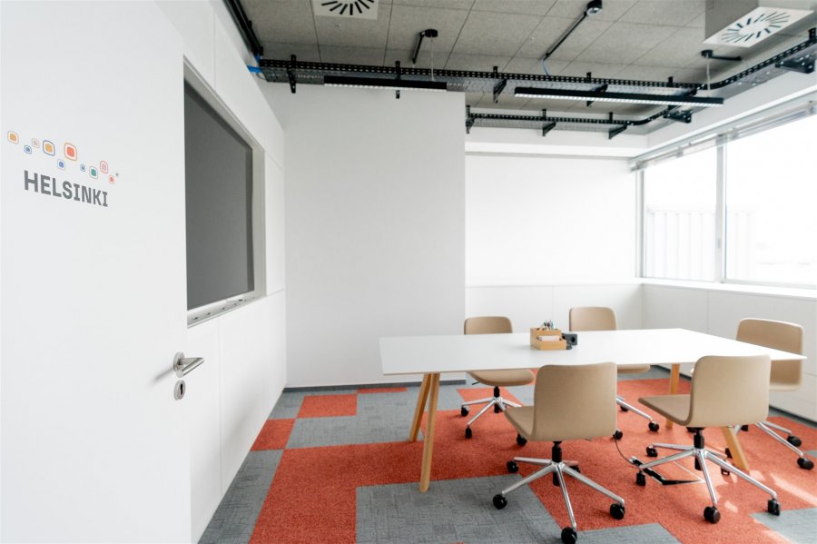 Ausstattung: Großer Besprechungstisch, 16 x Stühle auf Rollen, Cisco WebEx Pro 75' Bildschirm (All-in-One Tool für Präsentationen & Web-Konferenzen), Studio Tools Whiteboard-System